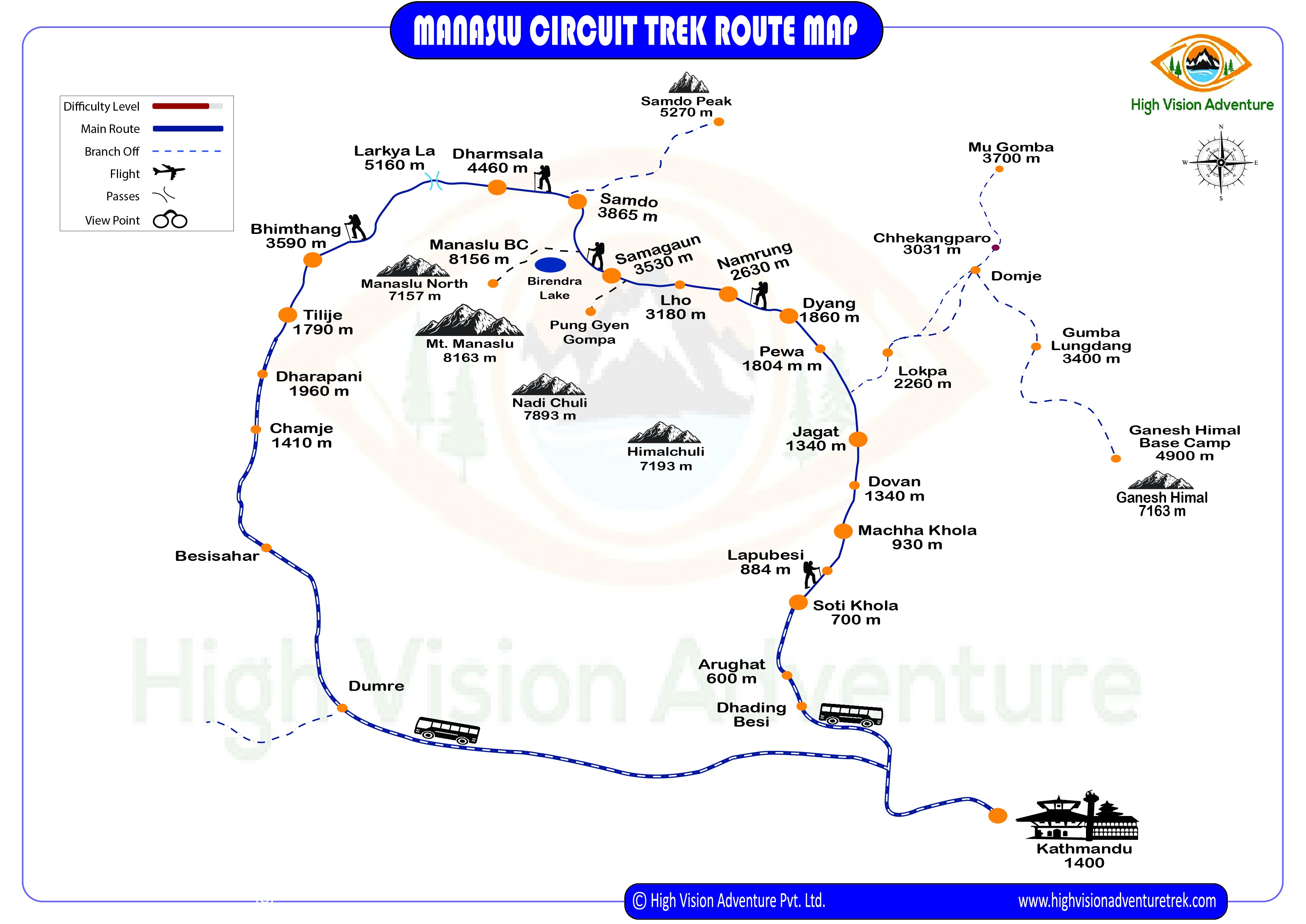 Altitude factors should not be taken lightly, as they may invite fatal threats. The Manaslu round trial starts from Arughat at 900m and climbs steadily as the path makes its way to Larkya La Pass (5,135m).