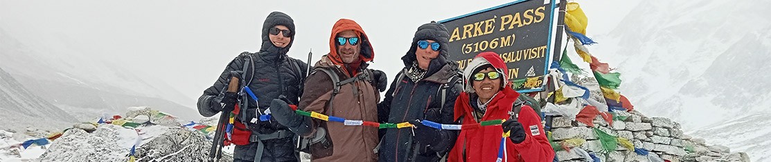 The Larkya Pass commands an excellent view of Himlung Himal, Cheo Himal, Kangguru, Manaslu, and Annapurna.