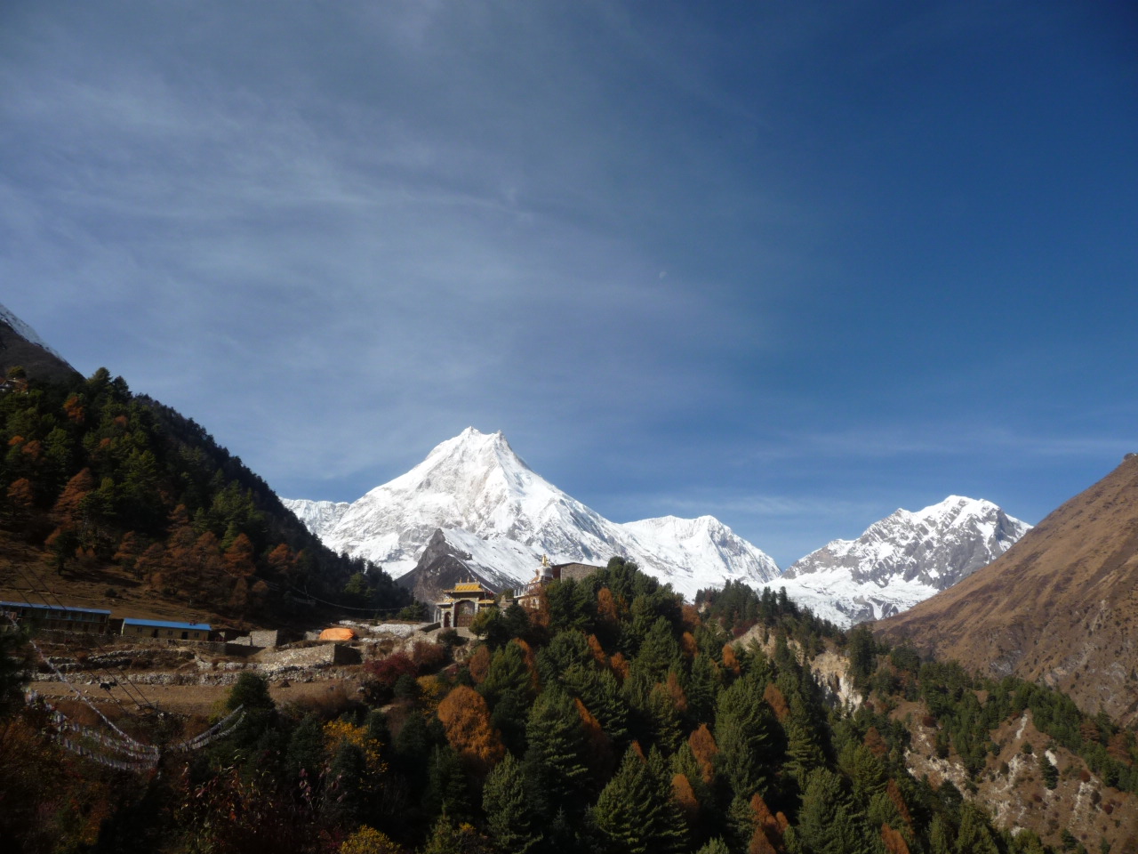 Lho commands a superb view of Mt. Shringi, Ganesh, and Mt. Manaslu.