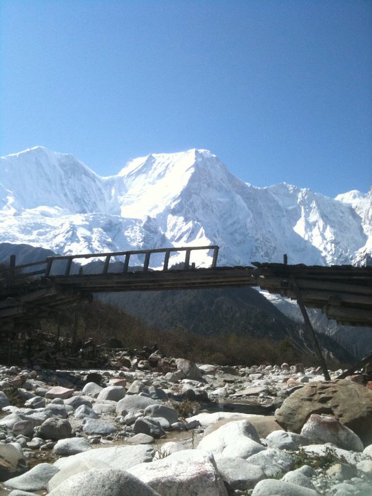 The downhill journey is quite long but a looming Mt. Manaslu along the trail will overwhelm you and push you forward.