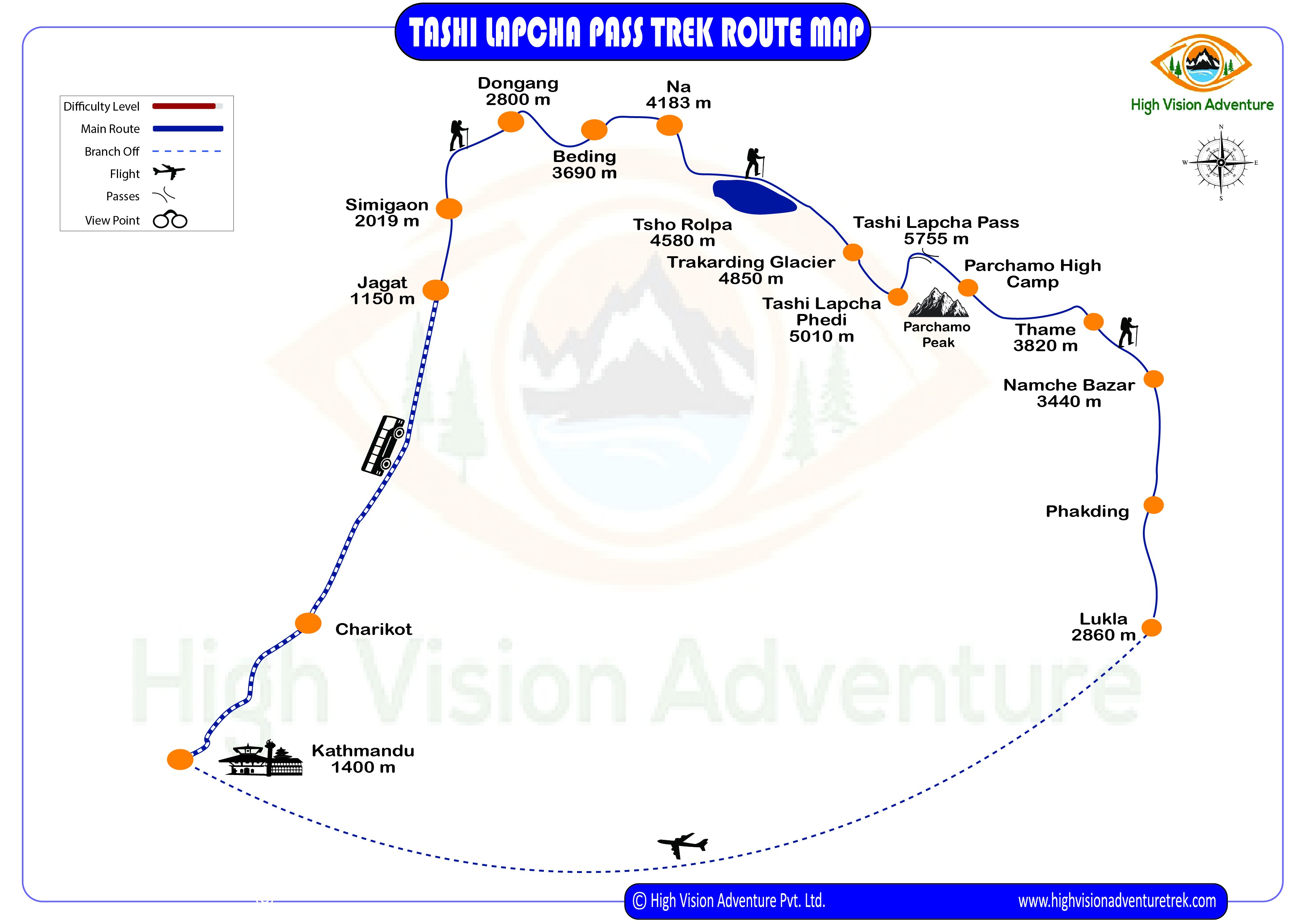 Rolwaling Tashi Lapcha Pass Trek and Everest Three High Pass overall is exciting off the beaten trek with strenuous which requires good fitness and endurance capacity. This trek is one of the difficulties among the high passes trek due to its height and landscapes. This trekking also holds a diverse landscape from 1400 m to 5755 m which causes an exciting shift in temperature. You have to cross the four high passes while being in the lap of renowned mountain peaks. So, without a doubt, Tashi Lapcha Pass Trek is the most demanding and technical trek of Nepal.